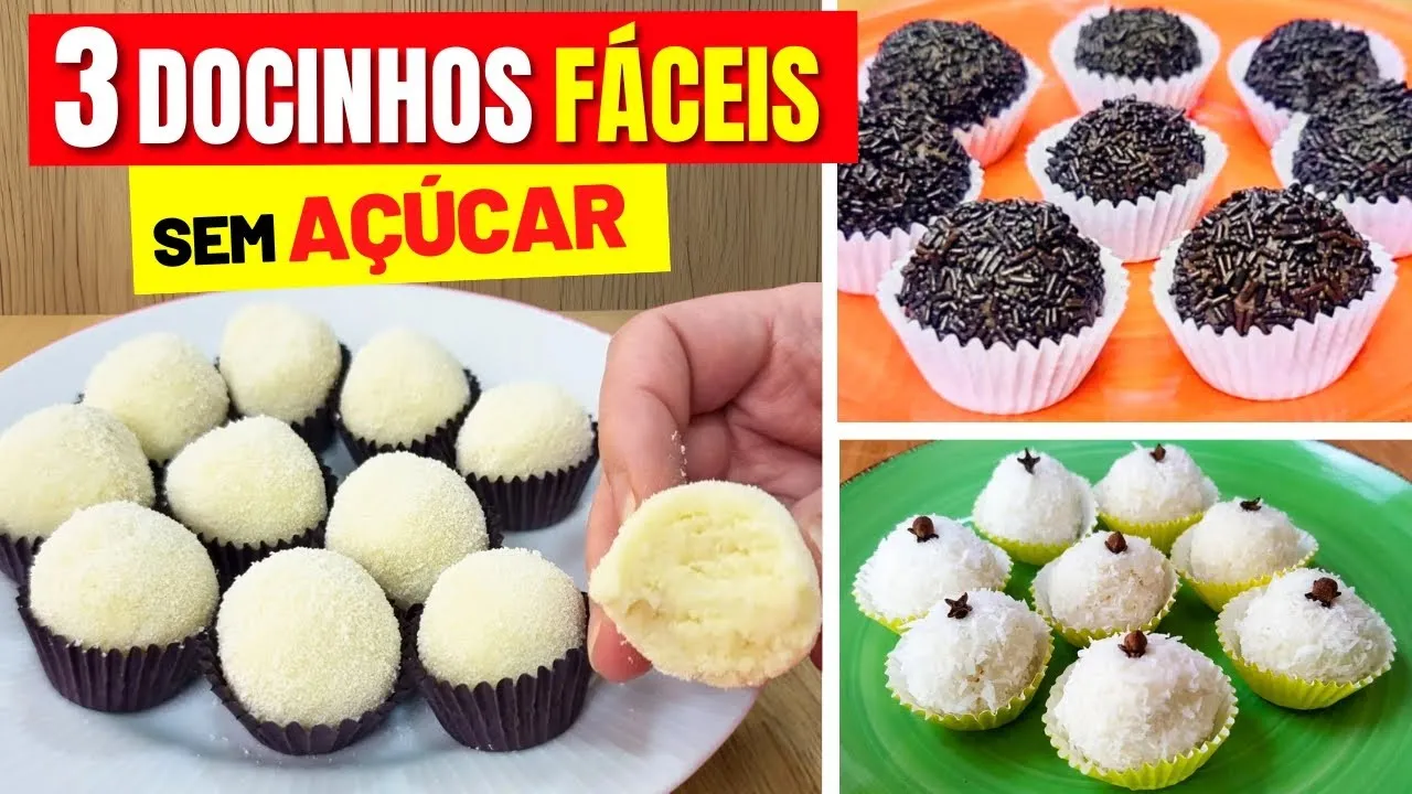 3 DOCINHOS SEM AÇÚCAR DELICIOSOS - Sobremesa, Festinha, Lanche - SEM FARINHA DE TRIGO, SEM GLÚTEN
